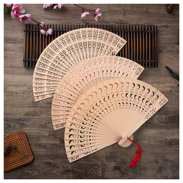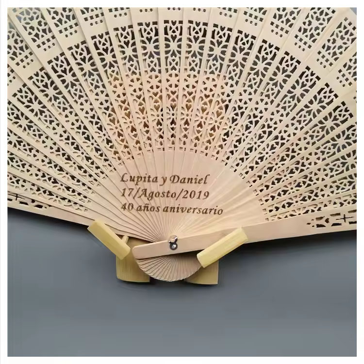 Bambuk vintage ad günü hədiyyəsi Qatlanan taxta əl fanatı.Müştəri oyma bambuk əl fanatı— Zərif, qatlanmış və üzüm cazibəsi ilə yüngül. Toy, partiyalar və ya mədəni tədbirlər üçün idealdır. Zamansız və praktik bir dekorativ hədiyyə üçün loqotipiniz və ya mesajınızla fərdiləşdirin.