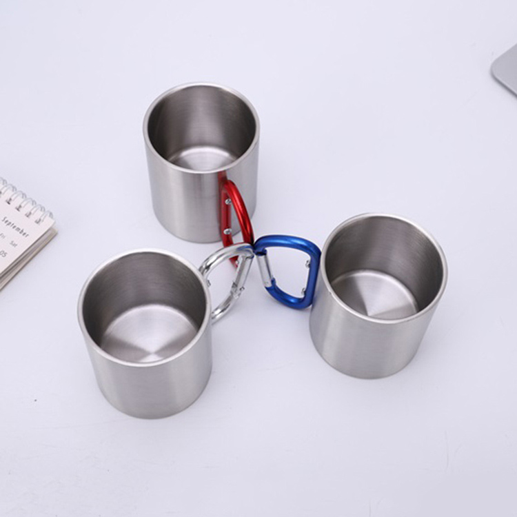 Düşərgə Cüt Divar paslanmayan poladdan səyahət tumbler flakon. Bu 220ml paslanmayan poladdan hazırlanmış tumbler, ikiqat divar vakuum izolyasiyası və rahat bir carabiner qoludur. Səyahət üçün mükəmməldir, həm soyuq, həm də isti içkilər üçün optimal temperatur saxlayır.