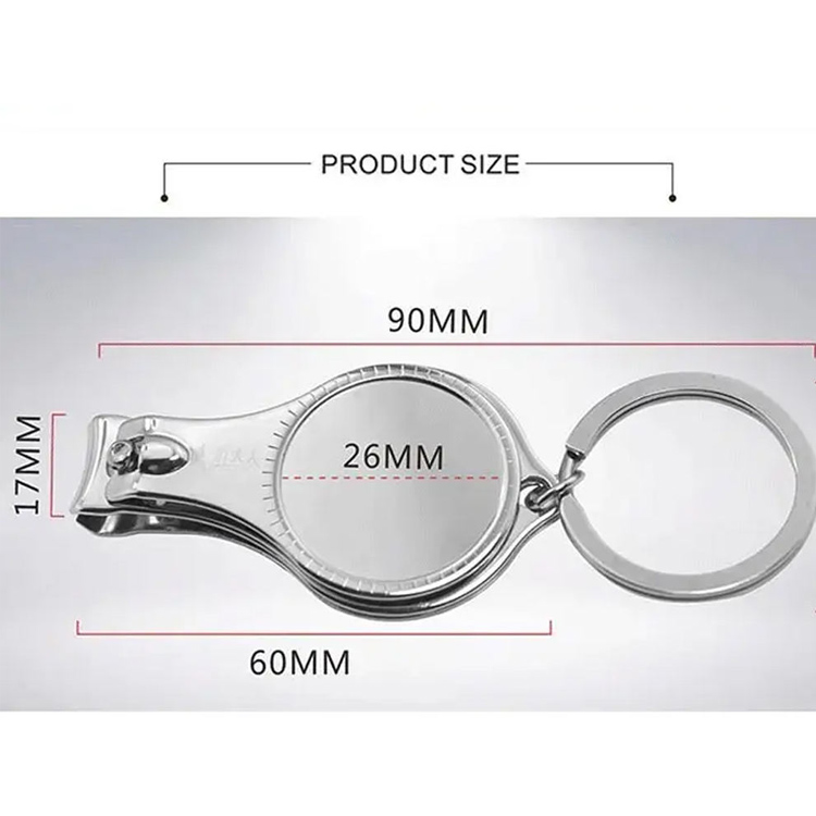 Qatlanan əl barmaqları açar düyməsi dırnaq qayçı dırnaq kəsiciləri. Sublimasiya boş səthi xüsusi loqotiplərə və ya dizaynlara, ideal bir təqdimat hədiyyə və ya fərdi aksesuar halına gətirməyə imkan verir.