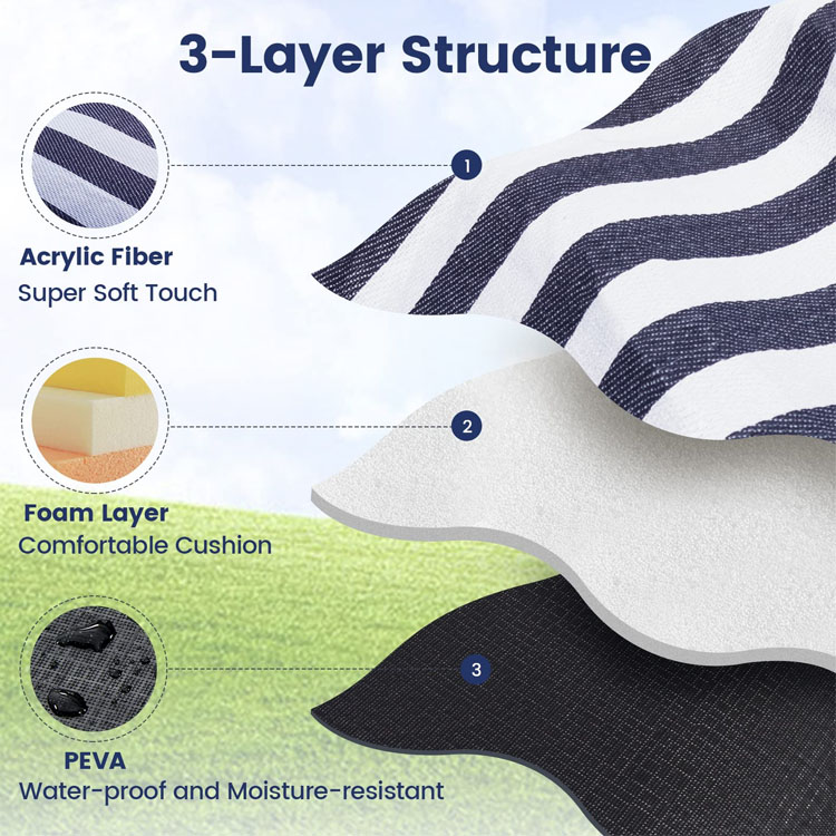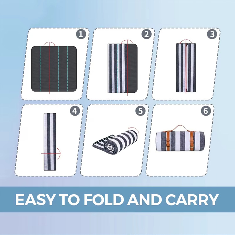 Qatlanan zolaqlı davamlı su keçirməyən suya davamlı piknik mat yorğan. Bu fabrik-birbaşa gəzinti mat, rahat aparat sapı olan kompakt qatlama dizaynı təqdim edir. Zolaqlı davamlı suya davamlı parça ilə hazırlanmış, topdan müştərilər üçün xüsusi çap seçimləri təklif edir.