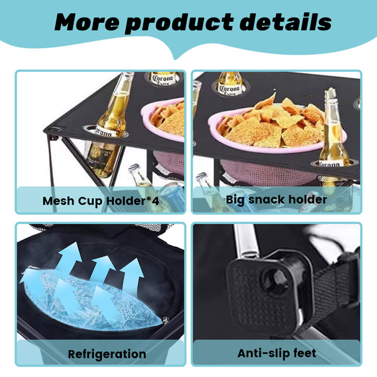 Açıq ev barı üçün müasir portativ dəmir qatlama masa. Daxili və açıq yaşayış üçün son portativ cədvəl. Bu müasir dəmir qatlama masası çox yönlü funksionallıq ilə davamlılığı birləşdirir. Ev barları, həyət yığıncaqları, park gəzintiləri, çimərlik barbeküləri, düşərgə səfərləri və qonaq otağı üçün mükəmməldir.