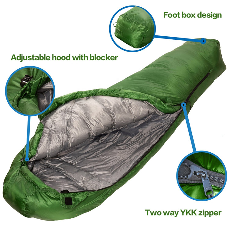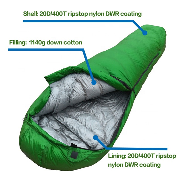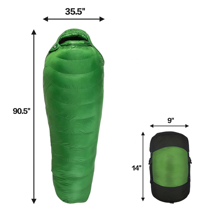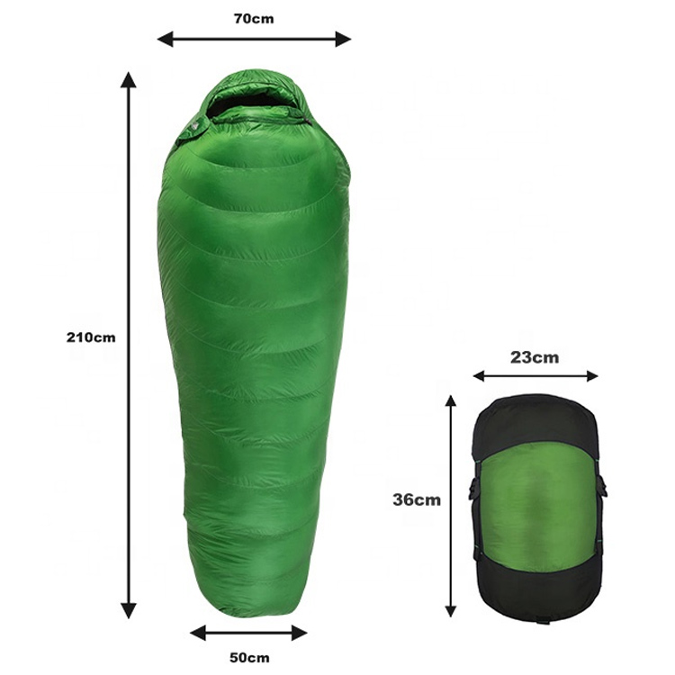 Açıq Ultralight Portativ Soyuq Hava Mummy Yuxu Çantası. Səhranın sərgüzəştləri üçün son Soyuq-hava yuxu həlli. Bu Ultralight Mummy Yuxu Çantası, maksimum istilik üçün mükafat ördək bozitasiyasına malikdir. Ciddi düşərgə üçün nəzərdə tutulmuş, minimal paket çəkisi ilə müstəsna istilik səmərəliliyini birləşdirir.