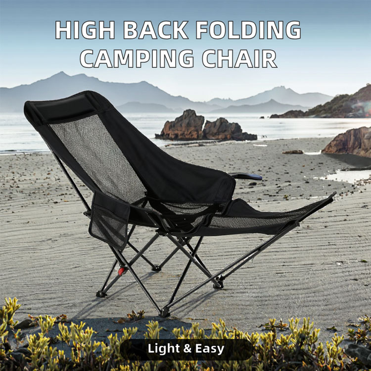 Portativ yüksək arxa qatlama kreslonu 3 tənzimlənən ayaq