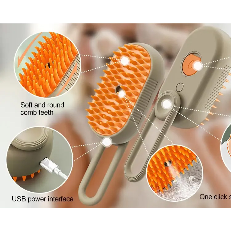 Buxar fırçası, pişik 3in1 üçün tarama, özünü təmizləyən pişik fırçası.° Fırlanan qol, ayrıla bilən silikon tüklü başı və səysiz baxım üçün buxar funksiyası. Ev heyvanınızı tökmək, təmizləmək və masaj etmək üçün idealdır’s fur.