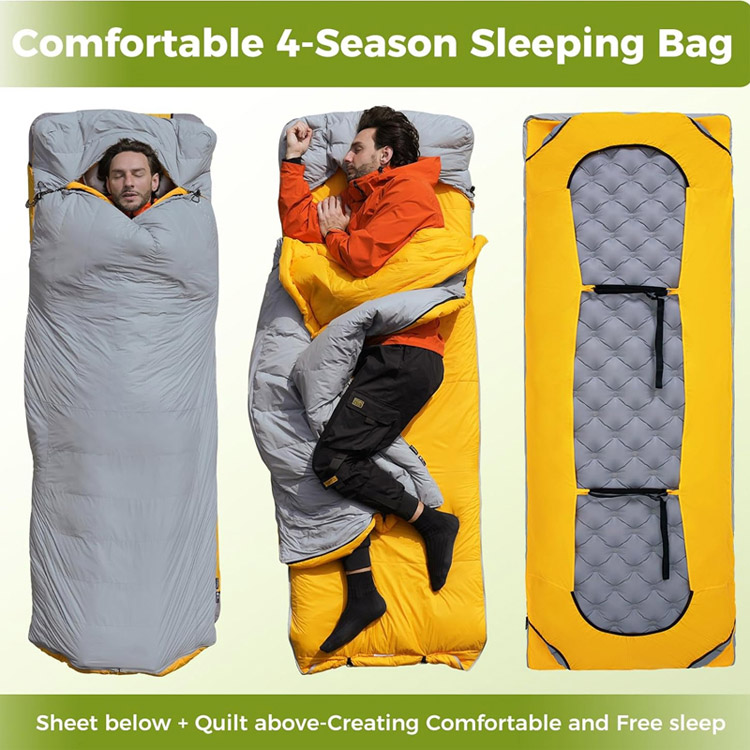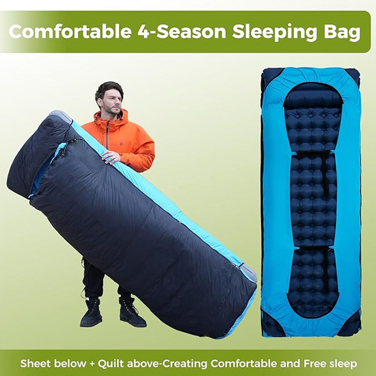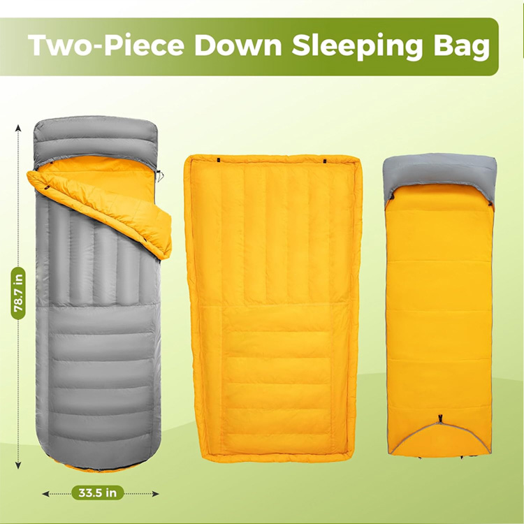 Ultralight Down Düşərgə Yorğası Duck Down Yuxu Pad. Səhranın sərgüzəştləri üçün son dörd mövsüm yuxu sistemini bağlayın. Bu ultralight aşağı yataq çantası, vahid şişmə pad ilə pompium ördək yıxılmış izolyasiyasını birləşdirir. Həm topquilt, həm də yuxu çantası kimi fəaliyyət göstərən, çəki pozmadan maksimum istilik verir.